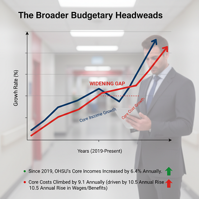 This national drift of rising labor and supply costs exceeding repayment rates underscores the troublesome monetary climate in which OHSU must presently conduct a national look for a replacement.