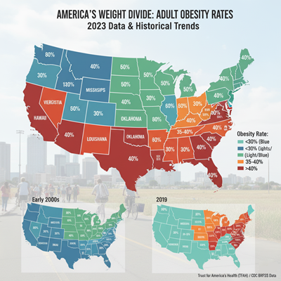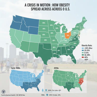 While a few afterward reports have showed up a slight decrease in the number of states with rates at or over $35%$—an enabling sign—experts caution that the by and large national rate remains diligently tall, impacting over 4 in 10 adults.