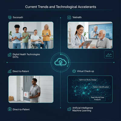 • Artificial Insights (AI) and Machine Learning: These instruments are progressively being utilized to optimize think about plan, recognize reasonable patients for enlistment, and analyze the colossal volume of real-world information created by DHTs.