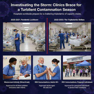 Hospitals over the globe are sounding the alarm, arranging for what masters expect will be a challenging and conceivably turbulent respiratory disease season. The joining and unconventional timing of COVID-19, Flu (Flu), and Respiratory Syncytial Virus (RSV), habitually named a “tripledemic,” pose a amazing peril to as of presently strained healthcare systems. This up and coming season is shaping up to be a fundamental test of around the world prosperity preparation, asking a encouraged response from open prosperity organizations, remedial providers, and the community.