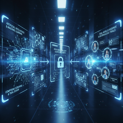 - Artificial Insights (AI) and Machine Learning (ML): AI is being utilized to screen millions of compounds, optimize clinical trial plan (e.g., quiet choice), and computerize administrative documentation. Controllers are presently centered on creating a risk-based validity evaluation system for these models, guaranteeing their straightforwardness, approval, and information keenness. The key challenge, as specialists note, is the require for “clean information, exactness in AI-generated insights, and to defend our information.”