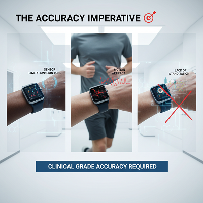 While shopper wearables are great for slant following, their jump into the directed restorative space requires a much higher standard: clinical-grade exactness. Information exactness in wearables is hampered by a few factors: