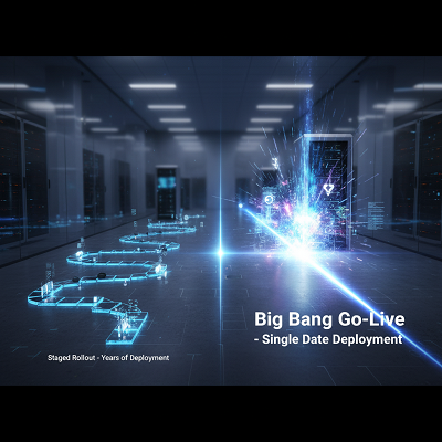 Historically, the overwhelming methodology, the staged approach, includes rolling out the modern framework department-by-department, site-by-site, or module-by-module over an expanded period—sometimes years.