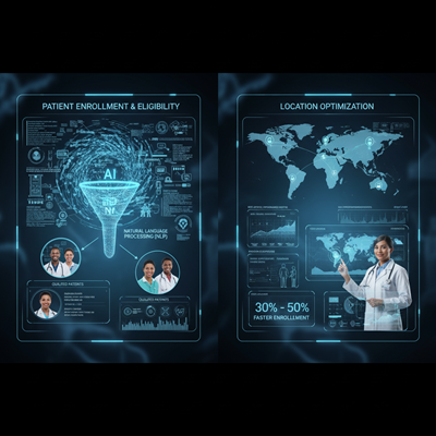 - Location Optimization: Machine learning models analyze site-specific execution estimations, specialist inclusion, and understanding socioeconomics to expect and rank the top-performing clinical goals for enrollment speed and quality. One ace celebrated that AI-driven assurance can advance the recognizable verification of top-enrolling goals by 30% to 50%.