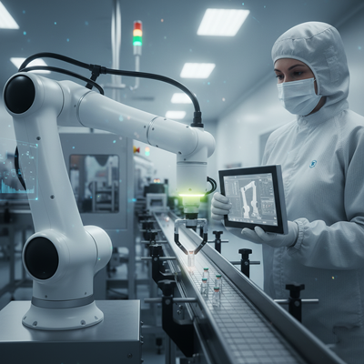 • Mechanical innovation and Cobots: Mechanical robots are commonplace in assignments requiring tall precision and sterile conditions, such as aseptic filling, bundling, and quality evaluation. Collaborative robots (cobots) are an creating incline, arranged to work safely adjacent human chairmen, managing with dull assignments like pick-and-place, along these lines minimizing the danger of debasement and harm.
